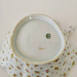 Vienna Porcelain Chintz Floral Bowl, Leaf Shaped, Quilted Pattern, Gold Trim