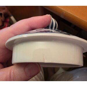 Condition: Good. Chip on inside lid - see pic 9. No other chips or cracks noted. Minor surface wear consistent with age and use.