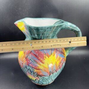 Vietri Italian RedWare Pottery Pitcher Carafe Jug Hand Painted Large Italy VTG