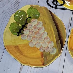 These are gorgeous Italian salad plates featuring Peach Grapes Fig and Pear. I also have another set of 4 listed. They are just to heavy to list together.