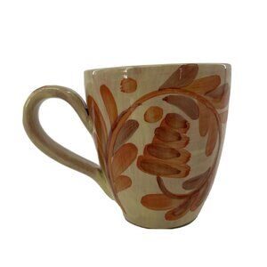 Vietri Italy Mugs are Hand Painted Yellow Orange Brown Floral Scroll and Stripes motif