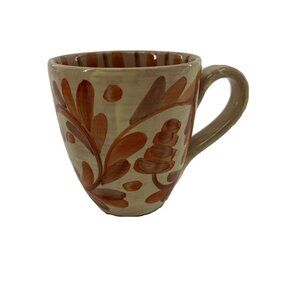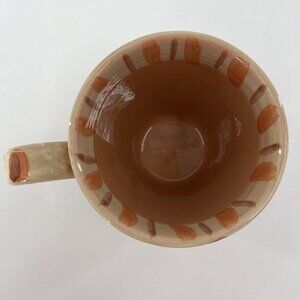 Vietri Italy Mugs Large Hand Painted Yellow Orange Brown Floral Scroll Stripes