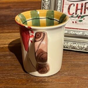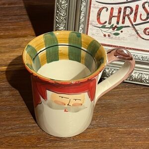 Per Website: VIETRI’s signature holiday collection is created from maestro artisan Alessandro Taddei’s childhood memories of stories his mother used to read to him about Babbo Natale, Italy’s Santa Claus. Alessandro's delightful designs on the Old St. Nick Mug - Red Hat feature Babbo Natale in his crimson cap.
