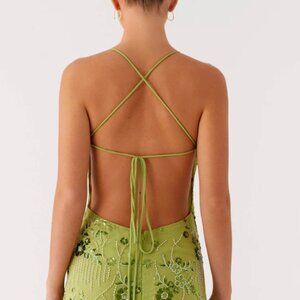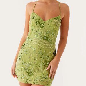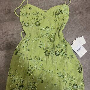 Dress is beautiful and completely new. I loved the color and print so much, just didn't really have an occasion to wear it. It's usually much more expensive to buy on the actual site so hopefully you can get it for cheaper lol.