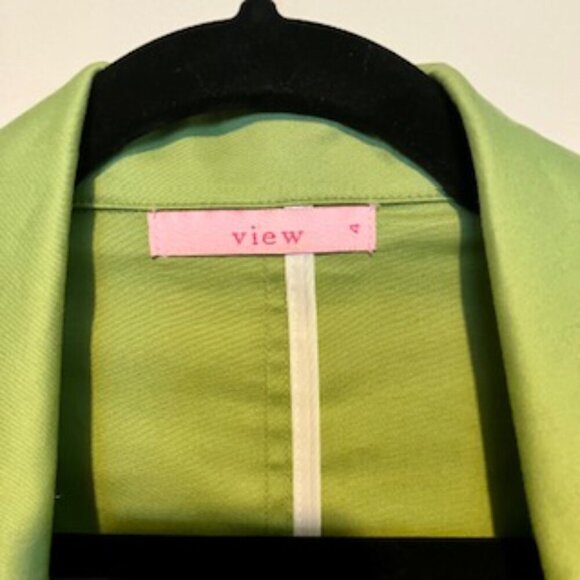 Green is trending for spring/summer and now has moved into fall! Mix this stylish green lightweight cotton (97%) jacket by View into your wardrobe. Versatile jacket can be worn dressed up for a night out or dressed down with jeans. Stylish Zipper details on front along with functional zippers on cuffed sleeves. Side pockets. Size 4