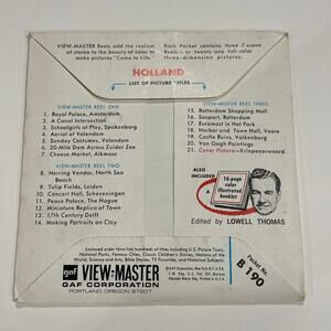 Condition: Slides 1 and 2 have some bubbling. Reel 3 is smooth. The envelope is in excellent condition. The Holland booklet is in excellent condition.