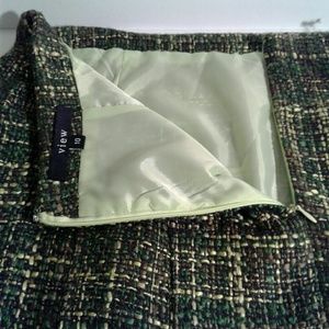 Beautiful green, white and brown mini skirt 100% wool satin lining barely worn excellent condition no snags tears or marks