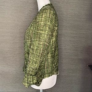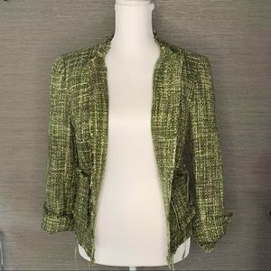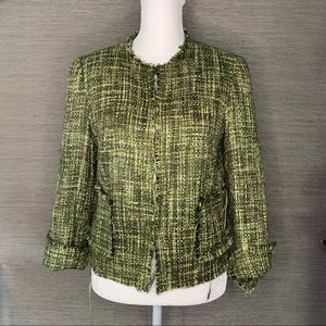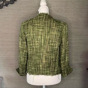 View tweed jacket, raw edges, hook closure, 3/4 sleeves