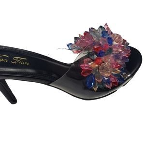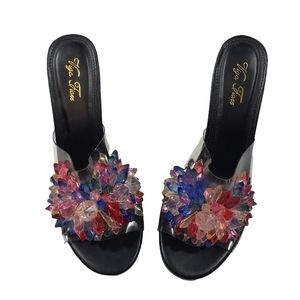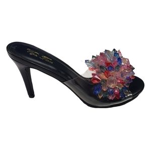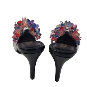 Viga Fiore Lucite Open Toe Heels Sz 7.5 3D Crystal Beads Colorful Slip-On Mules