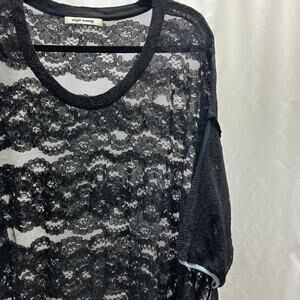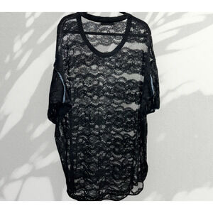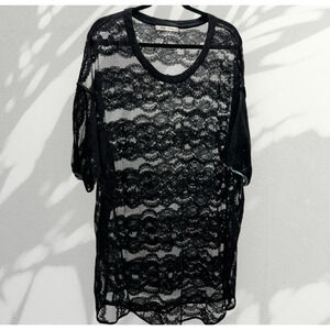 Viga Wang Black Lace Swim Cover Up Scoop Neck Short Sleeve One Size