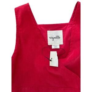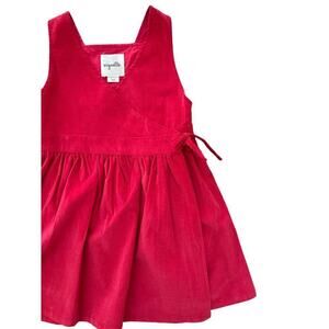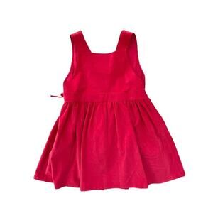 Fine, red corduroy and sporting a playful wrap front with a nice bow tie. Adorable on its on for those warmer Fall days, or pair with a long or short sleeve shirt or bodysuit for cooler weather.