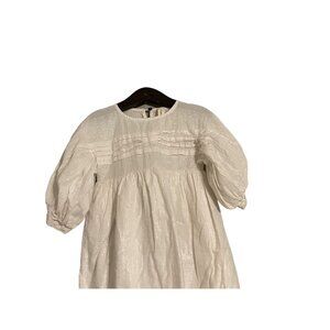 This lightweight casual dress for girls comes in white with gold accent threads. It's long-sleeved and perfect for any casual occasion. The dress is a size 3T and is part of the Vignette collection.