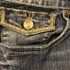 Vigold blue skinny jeans, size 16. These jeans feature a mildly distressed design and stylish flap pockets, combining comfort and style. The soft fabric ensures a great fit.
