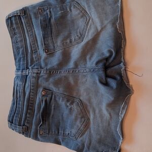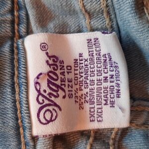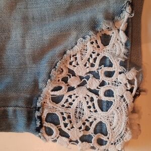Vigoss size 10 blue jean denim shorts with lace detail. Very good pre-owned condition. Smoke free pet friendly home. Please see pictures for measurements. Lace detail denim jean shorts size 10 Vigoss