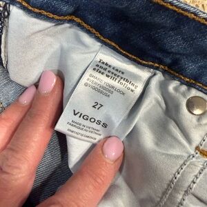 Stylish flare jeans by Vigoss. Deep blue hue. Perfect for versatile wear. Marley crop bot cut. Like new in great condition