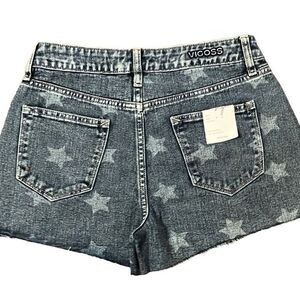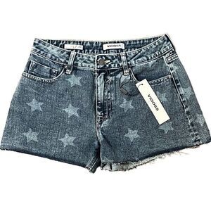 Vigoss Ace Shorts Size 27 Blue High Rise Star Deco New Raw Edge Hem Denim NWT