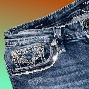 Vigoss Bedazzled Heritage Fit Bootcut Distressed Jeans Size 10 30x29 #61