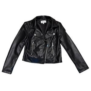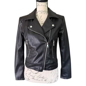 Vigoss Black Faux Leather Zipper Biker Motorcycle Jacket Size Small