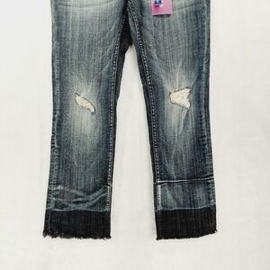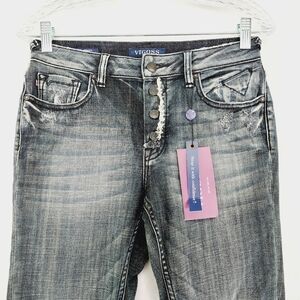 Vigoss Black Gray Distressed Acid Wash The Jagger Straight Crop Jeans P3235