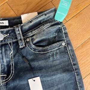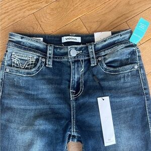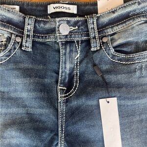 Experience the perfect blend of style and comfort with Vigoss jeans, featuring a stunning blue hue and intricate floral embroidery on the back. These jeans are crafted from high-quality denim, ensuring durability and a classic fit for any occasion. New with tags