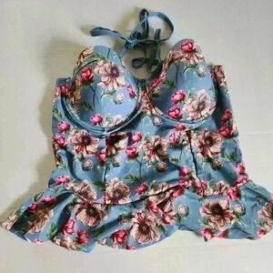 Vigoss Blue Floral Halter Corset Underwire Tankini 2X Summer Beach Vacation