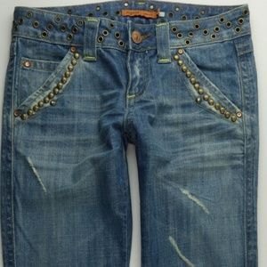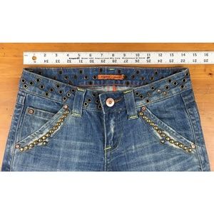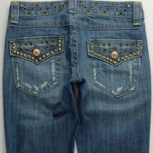 Vigoss Boot Cut 3/4 Juniors Jeans Stretch Studded Grommets Embellished C400P