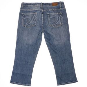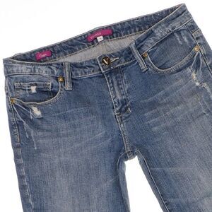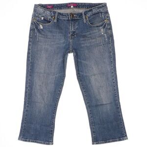 Vigoss Capri Jeans Size 11 Juniors Distressed Blue Denim Stretch Measures 32x21