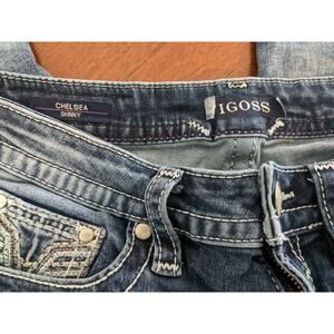 Vigoss Chelsea Skinny Jeans 1/2 Blue 28x25 Heritage Fit Embroidery Thick Stitch