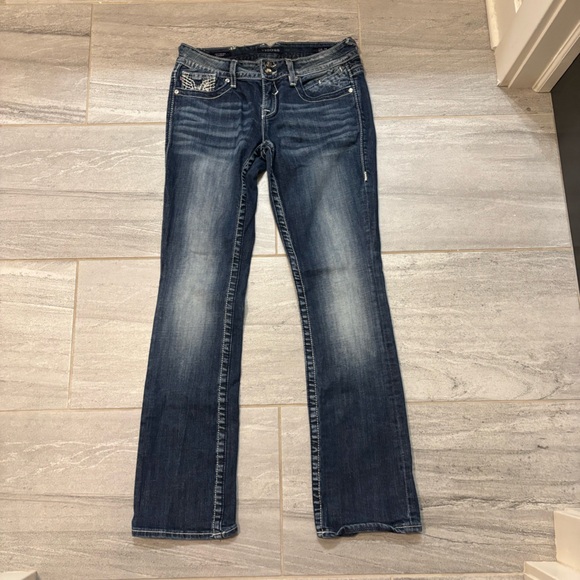 - great condition! All crystals/rhinestones intact and on denim! No spots, holes, snags or stains(: