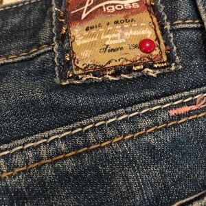 EUC Vigoss Chic & Moda 100% Cotton Distressed Cropped Jean 17 M. Mid rise. Button Zip Closure. Whisker/Sand Finish. Fringe hole right knee and left upper thigh. Distressed back pockets. Free of stains/wear. Awesome Cropped Jean!