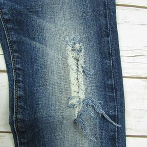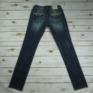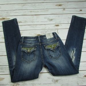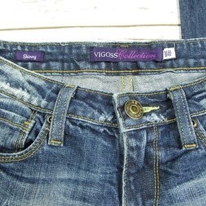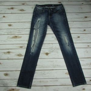 Vigoss Collection Destroyed Skinny Blue Jeans Size 26 1/2 Embellished Button Flap Back Pockets