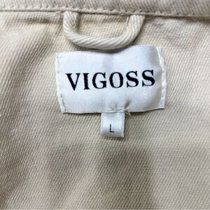This Vigoss cream jean jacket offers a chic raw hem cropped design, perfect for adding a stylish touch to any ensemble. Its classic utility-inspired look and neutral color make it a versatile addition to your wardrobe.