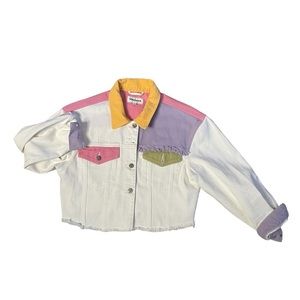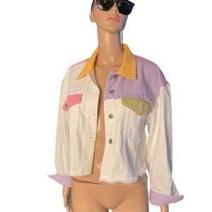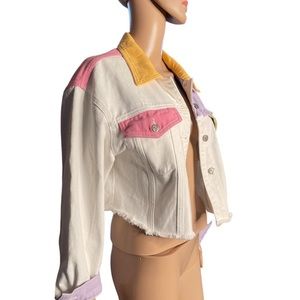 Adorable Vigoss Cropped patchwork denim raw edge jean jacket