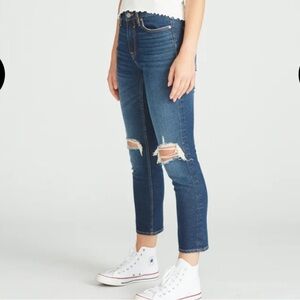 Vigoss Dark Wash Distressed Button Fly Slim Straight Jeans, Women’s Size 28