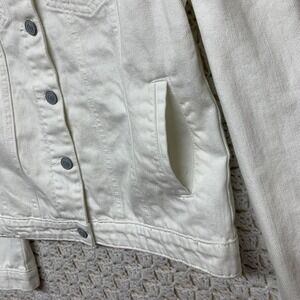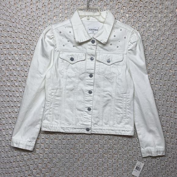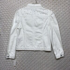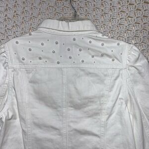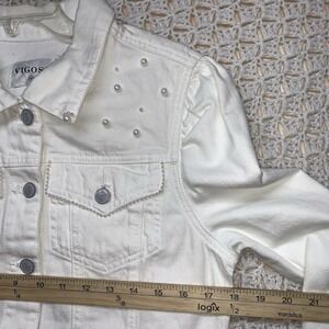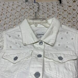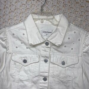 Vigoss Denim Jacket Womens Sz M White Jean Petals Pearl Posy Pockets Western