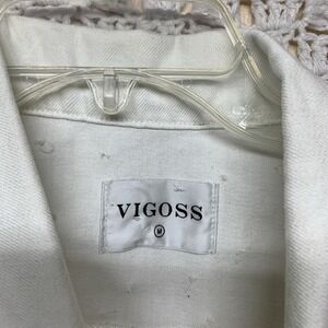 The Vigoss Denim Jacket in size M is a stylish and versatile addition to any woman's wardrobe. Made from a comfortable cotton blend denim fabric, this short jacket features a classic button closure and pearl posy pockets for a touch of feminine flair. The white color adds a crisp and clean look, perfect for casual occasions in any season. With its basic jacket style and regular fit, this VIGOSS jacket is a must-have for women who appreciate both quality and fashion.