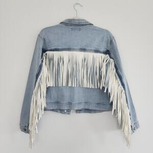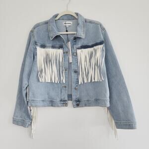 Vigoss Denim Jean Jacket Light Wash with White Fringe Size Medium