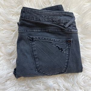 Vigoss Thompson Tomboy distressed black skinny jeans.