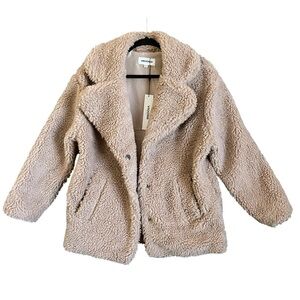 Vigoss Faux Fur Teddy Coat Color: Camel Size: L Allover faux fur Notched collar Three snap button front closures Two front pockets Lined 100% Polyester Imported See all photos for condition and measurements.