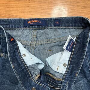 Vigoss Flare Jeans Size 7/8 Distressed Pockets Embroidered Denim