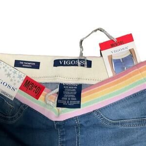 Vigoss Girls Jeans Shorts Bermuda Blue Cuff Rainbow Waistband Sz Medium 9/10 NEW