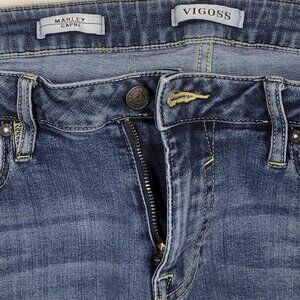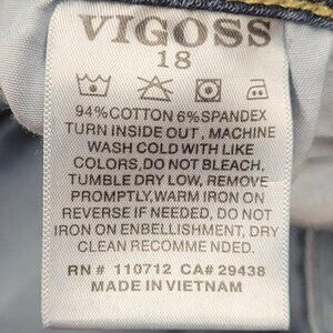 Preloved Vigoss high-waisted skinny capris in a women’s size 18. These capris offer a comfortable and flattering fit with a generous stretch. The classic style and versatile wash make them a perfect casual staple.