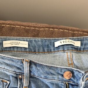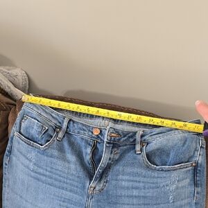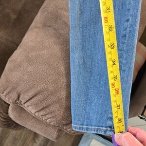 Trendy light blue skinny jeans. Perfect for casual wear. Features subtle distressed details. Size 32. Measurements in pictures. you can definitely roll up the bottoms. In great condition. Smoke free home.