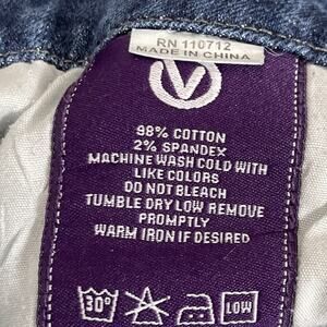 Vigoss Jeans Juniors 7 Flare Blue Stretch Demin Button Back Pockets Distressed. These jeans have some minor wear to pant cuffs, otherwise they are in excellent condition.