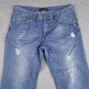 Vigoss Jeans Mens 38x29.5 Blue Straight Distressed Cotton Hemmed