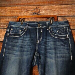 Vigoss Jeans Plus Size 20 Dublin Capri Low Rise Embellished Dark Denim Stretch