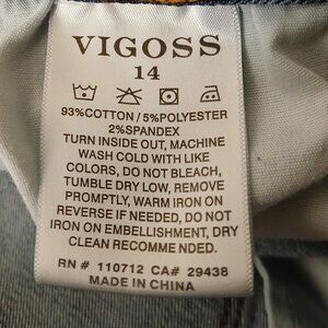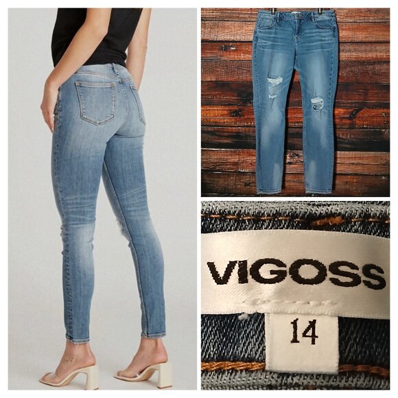 Vigoss Jeans Size 14 Jagger Skinny Distressed Blue Denim Stretch Mid Rise
