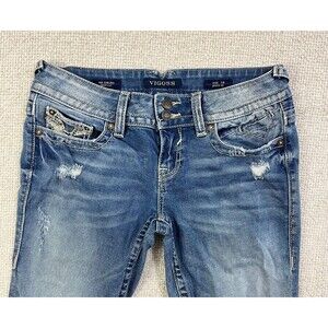 Vigoss Jeans The Chelsea Boot Cut Women's Size 7/8 Stretch Distressed Blue Denim