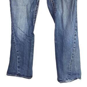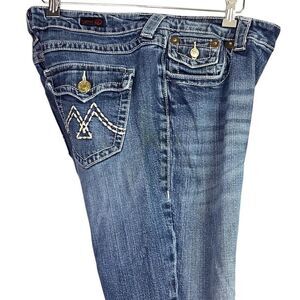 Vigoss Jeans Women 16 Blue Bootcut Stretch Twist Seam Distressed Creased Embroidered Retro Y2K