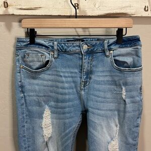 Super cute Vigoss jeans. Womens size 30 9/10. Cropped ankle length. Rolled up so could be longer if you unroll. Distressed. Style is jagger. 27” length. See pics for measurements.